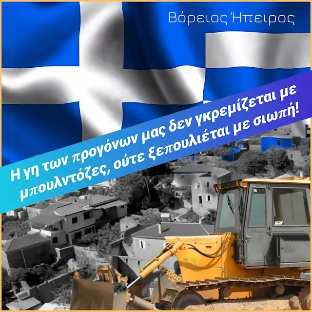 ΚΑΜΙΑ ΥΠΟΧΩΡΗΣΗ στην εκδίωξη των ΕΛΛΗΝΩΝ της Βορείου Ηπείρου! Η ΧΕΙΜΑΡΡΑ ποτίστηκε με αίμα ΔΕΝ ΞΕΓΡΑΦΕΤΑΙ Η γη των προγόνων μας δεν γκρεμίζεται με μπουλντόζες, ούτε ξεπουλιέται με σιωπή. Το καθεστώς Ράμα νομίζει πως θα ξεριζώσει τους Έλληνες — αλλά θα μας βρίσκει μπροστά του! Η Αθήνα να ξυπνήσει!!! Η Βόρειος Ήπειρος δεν είναι τσιφλίκι κανενός. Καμία ανοχή. Καμία σιωπή. Καμία προδοσία! Αιφνιδιαστικές και παράνομες κατεδαφίσεις περιουσιών Ελλήνων ομογενών στη Χειμάρρα της Β.Ηπείρου από το αλβανικό καθεστώς Ράμα.