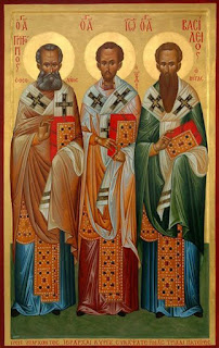 Σήμερα στεκόμαστε με ευλάβεια μπροστά στους Τρεις Ιεράρχες – τον Μέγα Βασίλειο, τον Γρηγόριο τον Θεολόγο και τον Ιωάννη τον Χρυσόστομο.