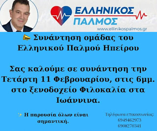Σας καλούμε σε συνάντηση την Τετάρτη 11 Φεβρουαρίου, στις 6μμ. στο ξενοδοχείο Φιλοκαλία στα Ιωάννινα.