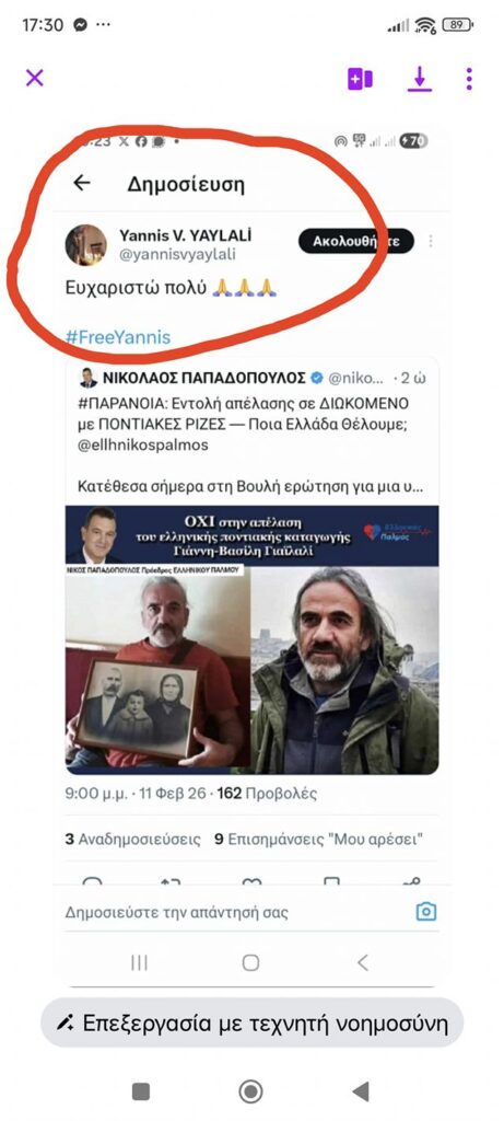 Λάβαμε το ευχαριστήριο μήνυμα ενός ανθρώπου που σήμερα διώκεται και απειλείται με απέλαση.