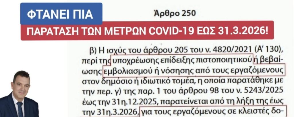 Η Κυβέρνηση Μητσοτάκη, συνεχίζει την παράταση των μέτρων Covid-19, έως 31.3.2026!